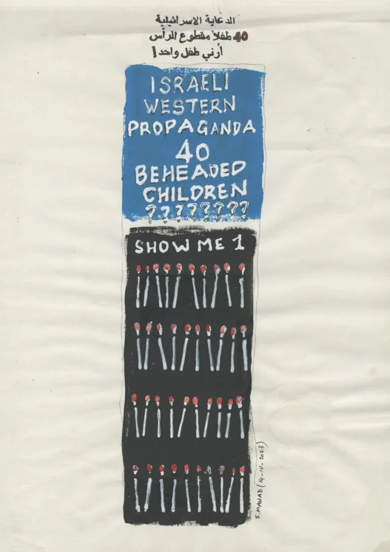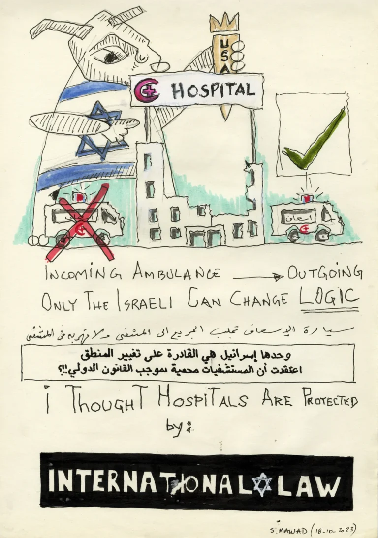 “I am drained by the Israeli Horror. I can not draw anymore. So how about the Palestinians being slaughtered?”.